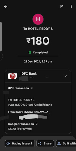Read moreUsed to be a go to resturant for us all before, but in recent times the quantity decreased and the cost for that quantity doesn't make any sense. The quality as well went down. We usually have biryani always and the quantity was really good as the ones you get back in Hyd, but in recent times it's been cut to half the quantity you used to get before and the prices aren't changed irrespective of the quantity. Dosa was also used to be very good interms of the size for the money spent, but dosa as well decreased. I guess the owner is in the middle of cost cutting or trying to make loads of cash off the slashed...