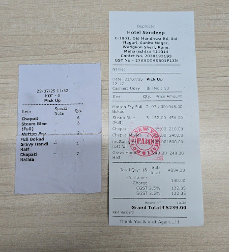 Read moreOne of the worst experiences I’ve ever had in hotel management. The manager at the Kharadi branch was extremely unprofessional and completely lacked basic management skills. I regularly visit other Sandeep Hotel branches, like the one in Shivaji Nagar, which are well-managed — but the Kharadi branch is by far the worst.
