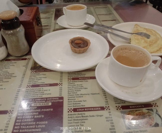 Of course, managing peak hours is no small feat, and Irani Cafรฉ has boldly decided to not even try. No queue system, no order in service, and definitely no apparent leadership on the floor. Just a bunch of overworked staff running around like participants in a game of โWho Looks the Busiest.โ Spoiler: No one won.
