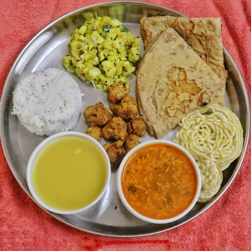 Puran Poli Thali - The thali served 2 Puran Poli (large in size) + Batatachi Bhaji (fresh grated coconut sprinkled on it) + Katachi Amti + Rice + Bhaji + Kurdai + Papad + Varan (Bina Fhodnicha). The Puran Poli was sweet and the poli was stuffed nicely with lots of puran. The Amti was mild spicy and full of Flavours. Rice was cooked well and good in Quantity. Varan was amazing, cooked well, fresh and too yummy in flavours. Bhaji was soft, less oily and tasty. Batachi Bhaji was medium spicy and so homely, loved it.