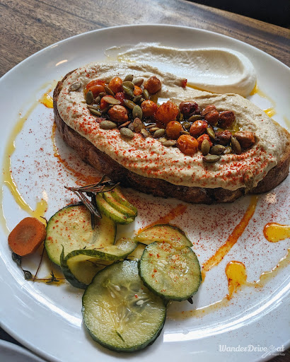 Hummus Tartine - Same buttered bread topped with hummus and crunchy chick peas and roasted pumpin seeds etc. The hummus was creamy and tangy, but the crunchy chick peas were a bit too hard, I was hoping for soft chick peas or just slight chunch for texture. But overall great taste.