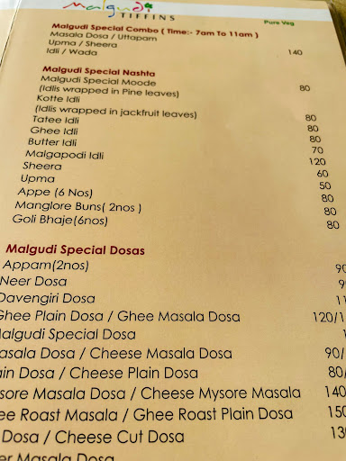 They make superb heavanely idlis We tried 1)Malgudi special moode:idlis wrapped in pine leaves. The screw pine leaves alomst make it a mystry to open this parcel as it is filled with thorns keeping it intact and here they had added toothpics...In udipi,mangalore the speciality is use fragrant leaves to makimg steaming hot healthy idlis.Here they have two options.One was pine Second was jackfruit. We tried the first.This had unique and distinct taste and flavours.The cylindrical shape of the idle in mangalore means moode.The flavour of coconut oil is distinct with the delicious coconut white chutney.