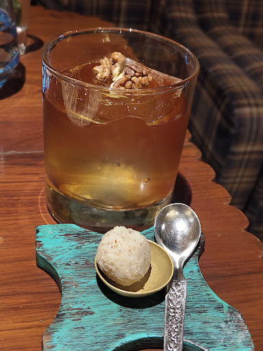 Read moreThis is a restaurant so befitting the Pune milieu â like visiting the home of a Parsi gentleman/trader who has voyaged across Persia, the Middle East, and Central Asia â in its theme, dĂ©cor, and the cuisine. âContemporary Indian Mezzeâ best describes the menu at Mister Merchantâs as the culinary journey across the Levant, Egypt, Turkey, Iran, Afghanistan, and a return home to India. The textured walls, warm woods, geometric black-and-white flooring, antiques (heirloom lamps and figurines), and the bespoke cutlery, transport you to a bygone era that is easy going, yet plush. Food is in line with the Silk Route narrative as cuisines from India and the Middle East.