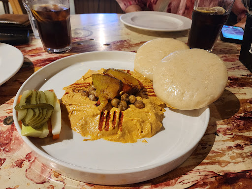Classic Hummus with Pita Bread. The description mentions "pine nuts aka chilgosa" which are 9000 rupees a kilo. When you expect a pine nut garnish but are served boiled chickpeas (probably 150 rupees a kilo) as garnish, that simply does not make the cut for me. I requested pine nuts, they did not have them which is why i sent this back to the kitchen, uneaten. I'd read the menu before ordering, i knew what i'd ordered, and i wanted exactly what id ordered. I wanted no special favours, all i wanted was what i'd read and ordered. Ziddi hu! 🤷🏻♀️ #SeedhiBaatNoBakwaas