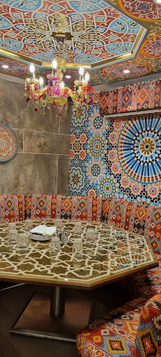 As soon as you enter, the grand entrance with its illuminated stairs sets the tone for the lavish meal ahead. The attention to detail in the decor, from the beautiful tiled flooring to the ornate wall art, reflects the rich heritage the restaurant embodies.