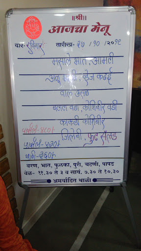 They offer mouth-watering authentic brahmani Maharashtraian vegetarian menu with unlimited servings. It's an all you can eat thali restaurant. For special festival days they have special dishes like ukadiche modak (उकडीचे मोदक). Or on sankashti they would serve special upawas food.
