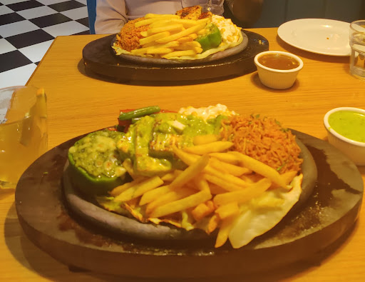 Greek chicken sizzler (mexi rice)- fries, sauted veggies, chicken steak, mashed potatoes, stuffed capsicum...the entire deal. Served crackling hot! Was good. But possibly not the best option in the menu. I'd recommend to pick something else, which may probably taste better.