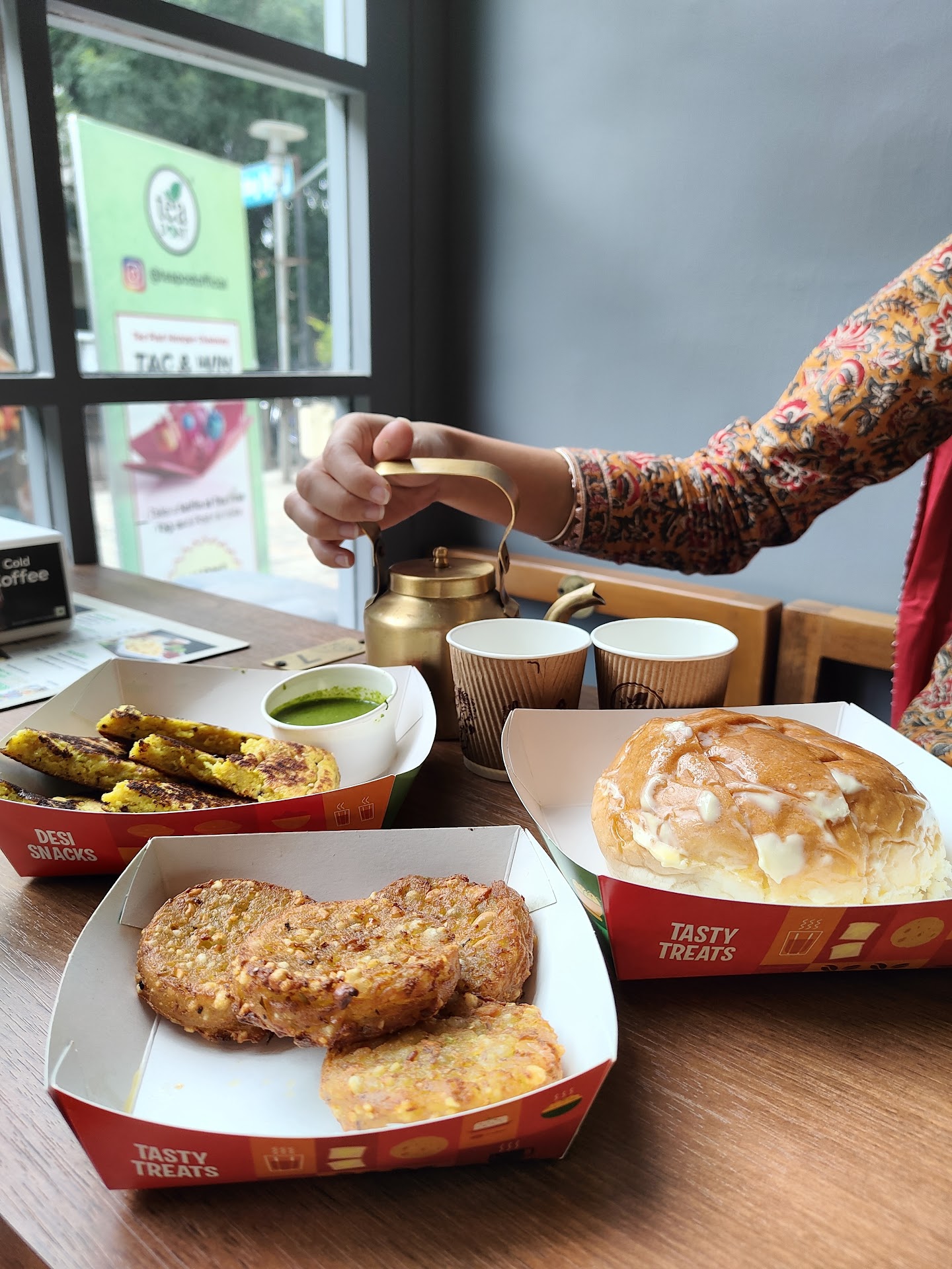 Read moreLoved this place. As soon as you enter you're at peace. Thanks to beautifully put together ambience. Colors, details, lights, big windows, all of this sets the vibe for you. We tried Ginger Pudina chai and I must say it was perfect. So, one kettle has around 3 cups of chai. Strong aroma, equally strong taste and perfect blend of ginger with pudina. Handvo was again very tasty and so was the bun maska. They have a huge menu covering all sorts of breakfast items and snacks. Beverages section has many options as well. Staff is really polite and sweet. Silvia and Punam assisted us while selecting what to eat and they were really friendly. All and all definitely a good place to hang out, to have a chai time, or just sit with your tea and read. Yes, they got a tiny reading section as well. Quality with quantity at a...