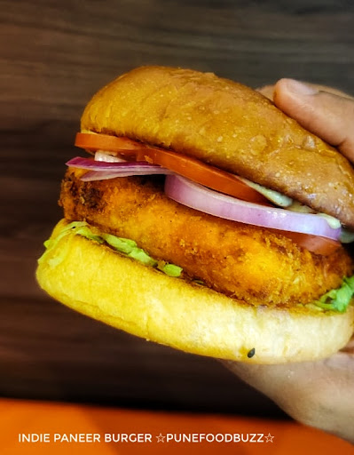 Indie Paneer burger - A much needed option for vegetarians. Paneer fillet is super fresh and cooked nicely with spicy coating. Served with sliced onions, tomatoes and mint mayonnaise. Loved it.