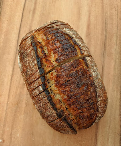 The chewy exterior, soft interior with some amazing gluten art & a slight tinge of sourness to highlight the sourdough characteristics makes this a perfect bread for someone looking for a good sourdough experience to start with.