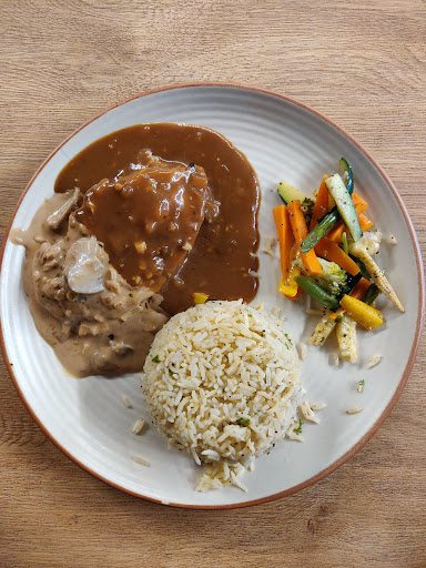 Zucchini Chicken Roast: You will be blown away by the Zucchini Chicken Roast—a boneless fillet of herb-stuffed chicken served with veggies, black pepper sauce, and red wine mushroom sauce. The chicken was really tender and perfectly cooked, but the sauce stole the show and enhanced the flavour of the dish. The chicken roast and vegetables were delicious with herb rice.