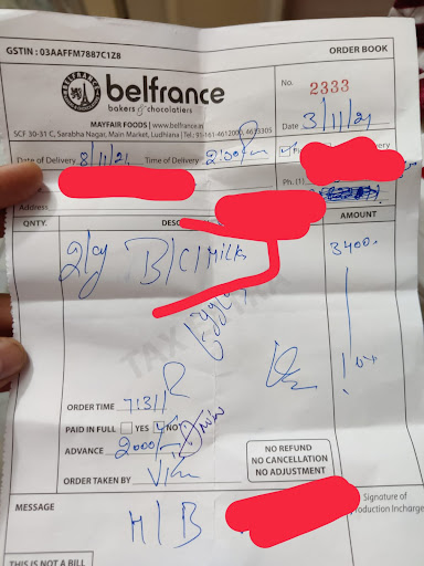 Belfrance ,one of the best bakers and resturant in sharabha ngr,kipps Market in Ludhiana.No doubt a posh area with so many restaurants , icecream shops,spa,Botiques but belfrance , definitely on top position.It was birthday of my son Milind Kwatra's birthday,so we choose Belfrance a perfect blend of delicious dishes and hospitality,one man specialy visit every table to satisfy their requirements and ask about quality of foods and if there is any negligence from staff,this is hospitality , nobody cares this.Hat off to the responsible staff. Food quality is so good and delicious ,just one cannot express in words , because it's matter of taste.Ample parking as usual in this market,well planned infrastructure ,neat and clean atmosphere for a family and friends to enjoy and spend their time happily...