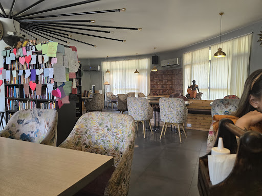 Read moreI visited Cup and Kitaab with my friends on a Monday Afternoon and we had a great time all of us were chilling and escaping the summer heat spent almost 5 hours. I love how well this place is Curated, with littlest gifts from various artists and friends of the place. The books that we see here are the personal collection of The owners, and their daughters . Situated inside the park, you can easily cut off a little from Mohali's unbearably disordered traffic and its noise. And I found out about the Open Mics and Exhibitions (flea market) that are about to be a regularly happening events, I found out about this place almost more than two years ago and simce then i have been wanting to go and speand some time here, unfortunately i moved out of the city and i wish I would have visited sooner, as of now you don't get WiFi, they say talk to each other, but if you are alone, you may want to just grab any book and talk to it. I really liked the open space to chill and sit, the Host, Dhwani Khatter, had been very nice and she showed me all around the place, i even got to see the basement kitchen. We ordered Adraki Paneer with Coriander and it was so tasty, been travelling for few days and i just wanted to get Roti-Sabji as we say here, it was perfect paired with Cola! Only a little dissatisfied with chai not being on the menu đ but that is okay. Highly recommended to travellers who would want to find out more about Mohali-Chandigarh and establish connections with people around. Even the Menu you will see is made by the daughters of the owners, its funny and different, I enjoyed reading it out loud.