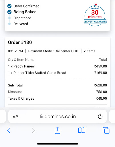 Read moreLate order 3 times in a row and half baked pizza order #142 from my wife' acct and they still do not have the courtesy to offer you any credit, still making excuses when the store is just 3 min from my place by drive. Infact, the same delivery boy who was late last time as well, yes this time seemed like it was store's fault as order was being bakes even after 30 mins. Still, let go last 2 times, but don't understand why a customers has to ask for credit and argue over it when it's the company policy to give credit of 300rs when it's not delivered on 30 min guarantee and clearly showed and reflected on order. It's not about discount, but it's about how honest and upfront these policymakers are with their customers and if they really can deliver, what they promise. Once in a while, one would like to see them not argue and make the customer feel like they matter by admitting their mistake, and offer discount on their own like it happens in developed countries like US and Australia and not make customers feel guilty about taking discount, when it's clearly...