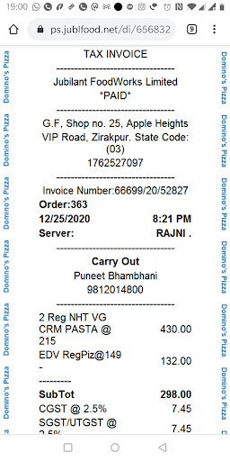 Read moreDomino's Pizza in Zirakpur offers a reliable and satisfying experience for pizza lovers. The location is easily accessible, with a clean and well-maintained store that offers a comfortable environment for dine-in, though delivery is a popular option as well. The staff is generally friendly and attentive, ensuring a smooth and quick service.