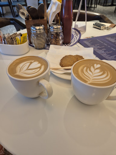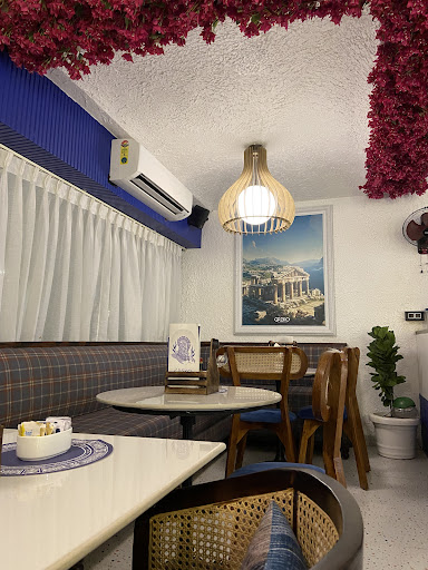 Very pretty cafe with Santorini vibes of blue and white, very delicately made and decorated. Instagrammable cute little cafe. A little congested I must say and gets noisy so you can't go alone and work. Their greeko special drinks are amazing. However matcha didn't seem authentic as it was too grainy and smelled like henna (not their fault finding authentic matcha is a tough job) 🍵 And the drink had mango and sugar syrup at the bottom which would just not mix as it was a cold matcha drink. So it was grainy henna first half and sweet sugar the other. They do alot of research in sourcing their coffee Hope they find good quality matcha as well.
