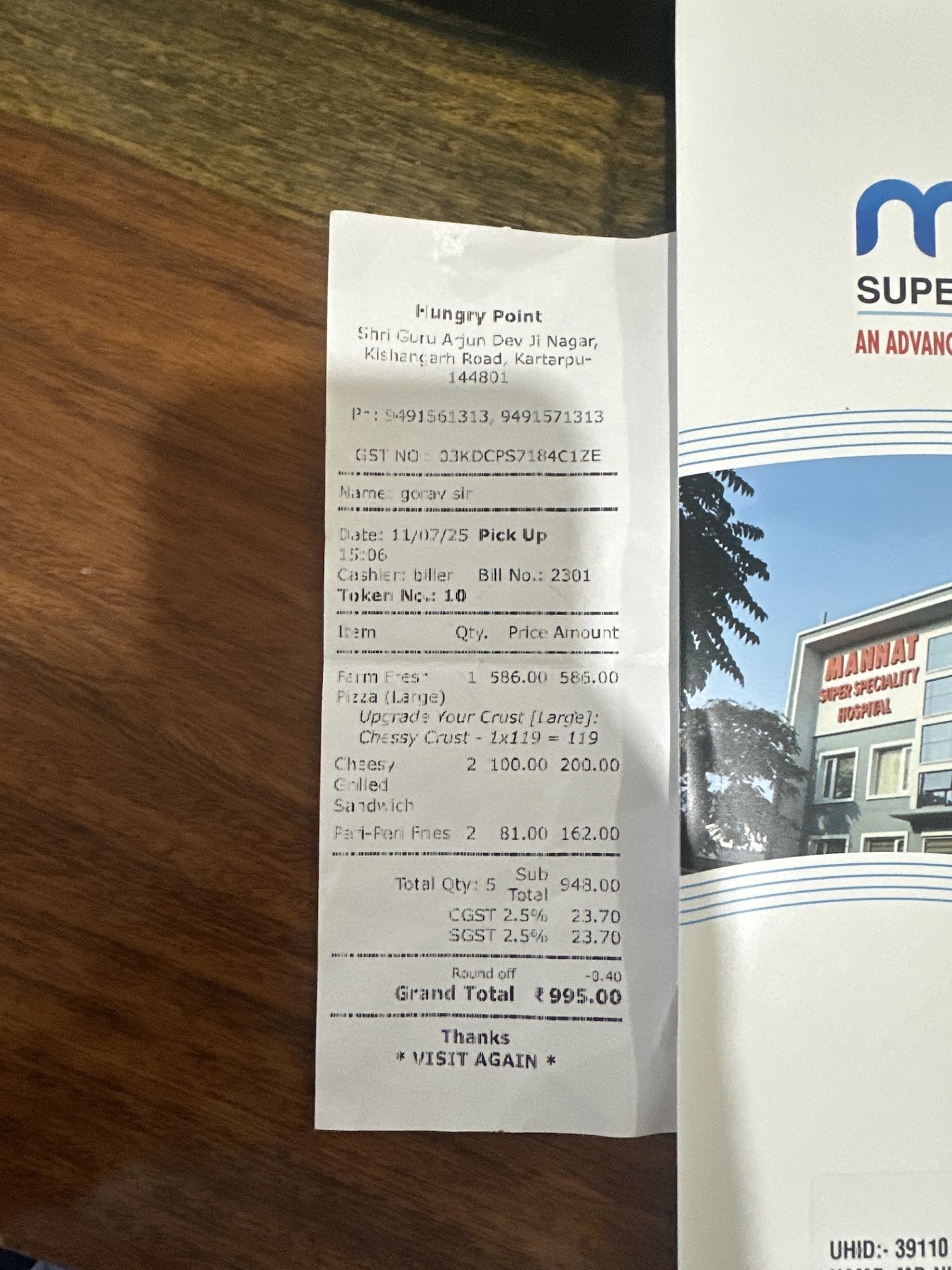 Read moreI personally suggest to never go to this pathetic place. Recently i ordered a pizza and sandwich from here bill attached below from my guest when we had done the food after few hours we all suffered from stomachaches and diarrhoea and it was soo severe that next day we had to go to hospital . I recommend to not...