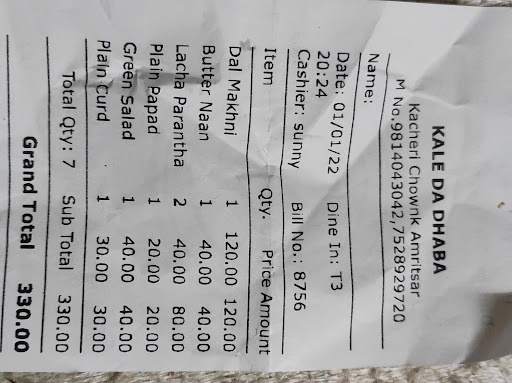 Read more"Kaale da dhaba" the old and famous dine in & takeaway restaurant located at court chowk in Amritsar city. It's very famous among the tourist in city as well as locals,it served for both the categories of meal that is veg & non veg at very reasonable rates as compare to others in the same service.The location is also known by the name of airport road. Model town mandir Mata lal devi ji is just 10 minute walk from the same location, all the cab and auto drivers know the restaurant very well. If someone comes to amritsar and want to visit the l location kaale da dhaba then you don't need to waste your on Google map to find the location instead of enjoy the journey just guide your driver of vehicle that " Kechahri chowk kaale da dhaba " under the bridge. It's 15 minute ride on bothe two wheeler and four wheeler from the railway station nearly 3km and on the way to airport Amritsar. In the mean way of SGRD airport don't go on the bridge you have to go by side...