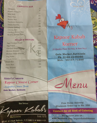 Kapoor Chinese Corner bathinda6W7P+7M4, Bathinda, Punjab 151001, India