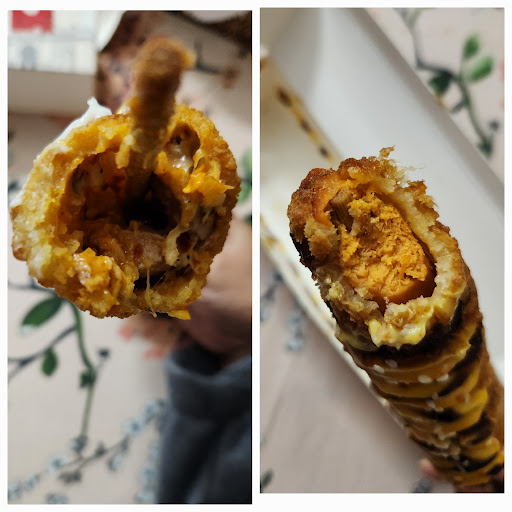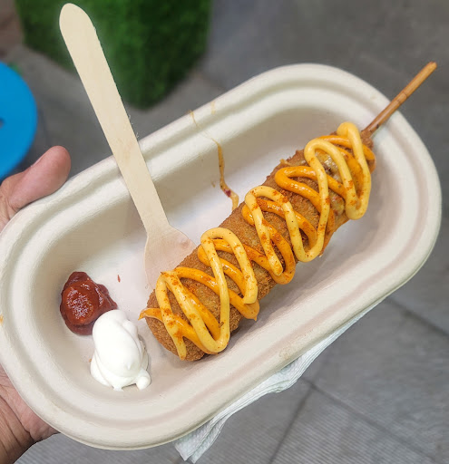 Fraudsters, not businesspeople passionate about food, are running this sham of a place. Through a direct interaction, the cashier at the counter said every corndog has cheese in it. I asked is it some random cheese or mozzarella cheese, she confirmed it's mozzarella cheese. I ordered a barbeque chicken corndog at the shop directly in person, it did not have any cheese in it. Only a chicken sausage coated with batter and deep fried, with bbq sauce squiggled on the top. I paid 220s for it in person. I also ordered a nonveg manchow soup, but they simply gave a vegetarian soup. The Korean fried chicken was a soggy mess, full of artifical colour.