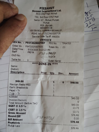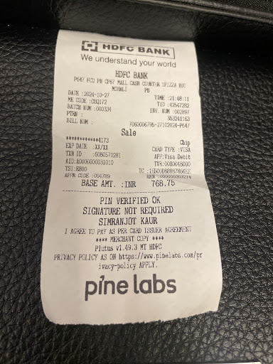 I visited to Pizza Hut today and nowhere I could feel I had a good and hygienic pizza. First of all at the payment counter the card system wasn't there and the cashier was asking me to do the payment only by cash being in a digital world I got to know that he did not charged the system. Second I ordered pizza bbq veg loaded one there was a cringe smell in the veggies as if they have not bothered the smell of mushroom and capsicum. The pasta was paneer pasta was all sour and smelly. Since we paid 1128 we anyhow had to eat. I haven't seen such poor services at any pizza hut outlet being a regular customer. Before leaving I asked the lady to give me the bag so that I can take the remaining food rather than throwing or I keep at the table unbothered. She just packed the lid and gave me and didn't had the courtesy to properly pack it and abruptly said we don't have any carry bags. The lady standing on the side who was preparing pizza and putting veggies was talking on the phone and putting any kind of veggies on the base of pizza without even seeing what exactly she need to put on. It's just seems so unhygienic after seeing putting all hands inside I literally felt like what I am eating and this is how the cooking and pizza items are put on. Plz give proper training to staff on hygiene and plz check the quality of veggies it was so...