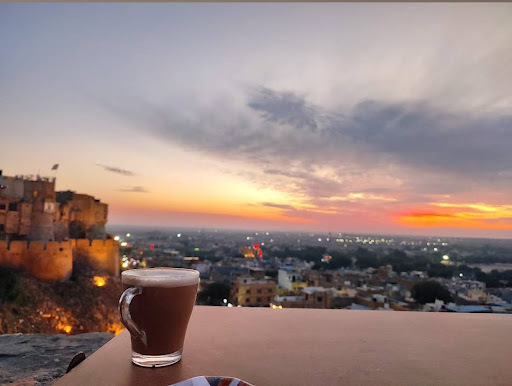 Read moreThis is the loveliest place to eat inside the fort!!! I came across this restaurant one sunny afternoon while exploring the golden city and it is now my FAVOURITE spot. The rooftop has an incredible view looking down over all of Jaisalmer - a view i had not seen anywhere else before. You can see the city, the lake and endless flat land stretching to the horizon. Inside they have the most amazing and cozy dining room with golden stone walls and magnificent carpets, rugs, cushions, couches and colourful decorations. There are low set tables and also comfy spacious window seats - again with the most amazing view looking down on the city. This is definitely my favourite spot to eat in Jaisalmer! The chicken curry and the laal maas from here are just so good! The food is amazing and affordable. The atmosphere of this place is also just unbeatable!! The staff are so friendly and the chef Jafar particularly was so kind and made sure we were very happy with everything! I highly recommend coming and trying the food here, because it will NOT disappoint.