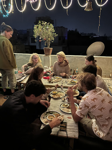 The rooms have little balconies with plants and it is very picturesque, with a lovely view of pushkar rooftops. The rooms are spacious, with a big mirror, clean bathrooms, comfy beds. It doesn't feel like a hotel, but a little home! There is a rooftop on top of the rooms if you stay here, which is perfect for sunset, and a little seating area downstairs, like a mini garden, which is lovely to sit in in the daytime to get some shade. There is even a small natural beehive in the trees!
