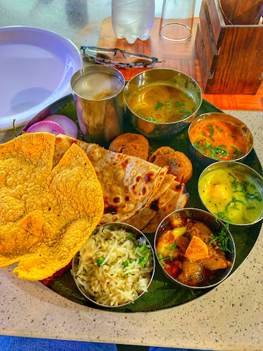 Food - There are different Thali Menu everyday and always exotic. The main course usually consists of 2 dals, 2 sabjis, 2 kadhis, papad / friams, pickles and 2 starters. The taste was great and had a good time. They also serve lassi to help you digest so much food - great!!