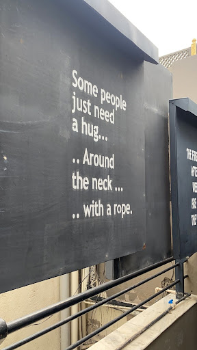 Read moreEven after multiple verbal complaints, this restaurant has not taken any action to remove these boards, it says "Some people just need a hug around the neck with a rope". I was shocked to see such message in a public restaurant where lot of families come with their children, this message is very negative and depressing. I told them directly at the restaurant when I was there and they promised me they will remove but after two months it is still there. I don't care about the quality of food or service they provide if they can not remove such negative message from...