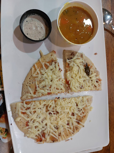 Food and service We ordered rava masala dosa and uttapam . The food was served with in average time of 15-20 min .The presentation of dishes was impressive. The taste of dosa was very good and uttapam was average. The service and staff was good but was missing proper restaurant dress .