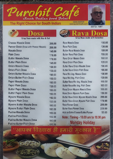 We went as a family during lunch time. Horrible experience starting from entering we had paid our bill. The appearance of the restaurant was more like a road side shop which we didn't mind as we were only looking for authentic south Indian since we have moved from Bangalore. But we were let down by the service to start off. The waiter was very rude he was not able to repeat the order we gave. When we asked for what's the difference between plain butter uthappam and Butter uthappam he said its the same, when asked why the butter uthappam is priced more, he said if you want to eat just eat don't ask questions. Sambar was nonsense it had cloves , Cinnamon . The Chutney was worst and they call it as coconut chutney, no garnishing was done. When we asked why is this sambar like this , the service fellow told me its their special preparation. I have been bought up in Bangalore and its the hub for south Indian food , i have never tasted a sambar like what I had in Purohit. Uthappam size was also small. Their masala dosa also tasted very raw some of the potatoes was not cooked at al l , it was oily and greasy. i feel that they make all their food either with used oil or some low grade oil. My kids started to have stomach problem even we had acidity issue. The restaurant was also smelling bad because of the cooler they have . We had issue in the bill, they had not remove the item which we had cancelled and when enquired he says just cut the cancelled item and pay the rest . I was shocked if I hadn't seen the bill , I would have paid the amount . I told my driver who got me here never ever bring anymore people to this restaurant.