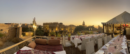 Our hotel recommended this place. The food was good, though it's definitely catered towards tourists. We asked for our food to be spicy but it wasn't at all spicy. Besides that everything was good. The food was tasty and service great. Our waiter was so nice and spent a while answering our questions and telling us about the history of the Maharajas and the heritage hotel next door. Halfway through our meal, we heard loud music outside which turned out to be a wedding. My friend really wanted to check it out so we rushed outside with our purses but we left a few things behind. We didn't expect to stay out for long but the people celebrating were so welcoming and they kept wanting to dance with us, and the procession went along the streets of Jaisalmer. By the time we left the restaurant had closed so we planned to come back the next day to pay. I just so happened to tell the waiter which hotel we were at. When we finally got back to the hotel, the restaurant called the hotel to report left behind items. We told them we'd come back the next day to get our stuff and pay. But they came to the hotel anyway late at night to give us back our stuff and we paid them. Hopefully someone from the restaurant reads this, and our waiter knows we really appreciate everything. We were the girls who ran away, and we're sorry we didn't mean to...