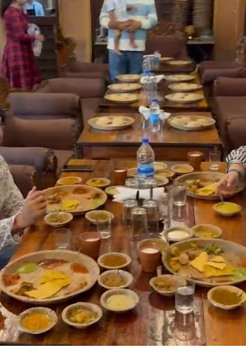 The food itself was extremely heavy, dominated by dishes made mostly from besan (gram flour) and pulses. While it might be considered authentic, it felt more like a deep dive into old grains and flours than a balanced Rajasthani thali. The flavors didn’t stand out for me most items tasted too similar. The khichdi was confusing, almost like a sweet kheer with jaggery, sugar, and ghee, which I personally didn’t enjoy.