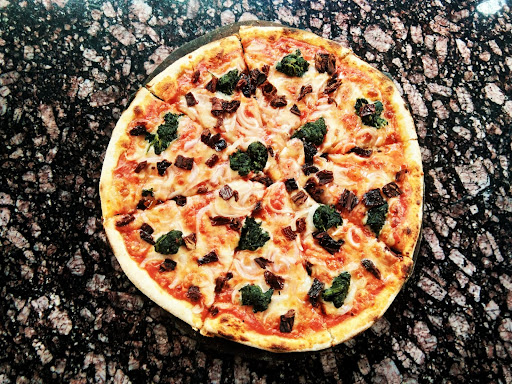 Their signature pizza, Tavola Con te, featuring spinach and olives, is a unique and flavorful choice. The combination of fresh ingredients creates a harmonious taste that sets it apart. The spinach adds a vibrant, earthy element, while the olives provide a delightful burst of briny goodness.