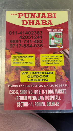 💯The price & rate at this so called dhaba is equivalent to restaurant . It's like an highly expensive restaurant disguise in the name of dhaba setup . Food was ok but not extraordinary and not worth at all with the price they charge for dhaba setup. Either they should serve more quantity of food with there current so much high price range or otherwise reduce the price also as per the quantity they give currently .I ordered half chana dal from here which I eaten there ,the quantity of Channa Dal was very very less ,even it's not sufficient for single person , We spent Rs 215 in total as also ordered 4 tandoori roti as well. I was with my dad and dal quantity was not sufficient even to eat with 1 tandoori roti . I requested extra dal so that we can atleast eat over pending 1 tandoori rooti which we ordered already but they didn't provide that even after request . These people are extremely arrogant in that aspect and the owner here is making people fool by selling food with dhaba setup by charging restaurant prices in dhaba setup which was very strange ,so the food was not value for money for the quantity they served at all as per the price they charged and as I said food was also not so extraordinary that one must pay such high price price for such quantity of food which they served.💯 .The seating space here is also ok ok type,nothing in front of amount that they charge here for food .💯 Lastly Isse 100 guna badia dhaba near Prestige convent school Rohini sector 8 mai hai. Yeh sector 8 wala dhabba value for money hai with extraordinary taste of Dal makani ,chole & kadi especially .So I suggest everyone to try food at Sector - 8,Rohini ...