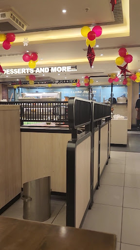 My review 6 months ago. I am giving my review after a year and after 4 months of this outlet shifting to new center. Food has improved by leaps and bound BUT chicken is dry and I can taste only oil. 2. Prawns were burnt in the 2nd round. 3. Fish was soft and tender but too salty. 3. Salad, Main course and desert was the saving grace. 4. Inconsistent menu for different tables. I mean one table got puchkas but not the Palak chat on the other hand one got papri chat and golgappa shots. So i mean make it same for everyone. 5. The puchkas are fried in stale oil and the Pani is bitter...major let down. 6. The mocktails...please don't order. Stick to canned drink, water or something direct from the bottle ONLY.