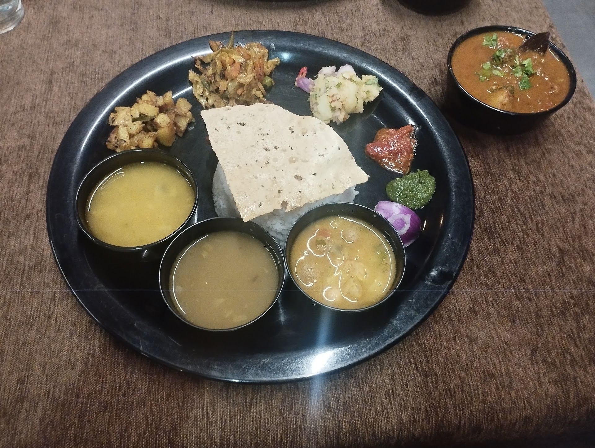 The restaurant's ambience was a fusion of traditional Assamese aesthetics and contemporary elegance. The warm wooden decor, adorned with intricate colors, immediately transported me to the rich cultural heritage of the region. The soft lighting and soothing instrumental music in the background further enhanced the overall dining experience, creating a serene and comfortable atmosphere.