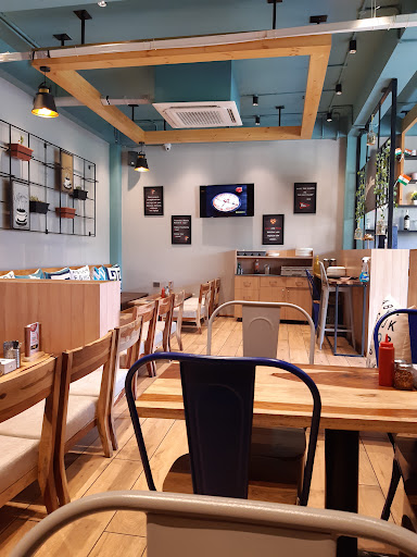 Read moreIt's a nice fast food franchise. They serve pizzas (obviously) but also operate a cafe and fried chicken joint together. This means that you get to order from 3 different menus and have it served at the same table. The food was excellent - we ordered veg and non-veg pizzas (American, not the desi ones, although those are also among the options), cheesy potato pops, sheekh kebabs along with a watermelon mojito, Oreo shake and an affogato coffee drink. Both the veg and non-veg pizzas were very good, and I especially liked the slightly spicy kebabs. The mojito was good too, although some might find it a bit too sweet. The ambience was very well done. The crowd was mainly a high school & college-going lot, but families can certainly find appropriate space in the upper floor.