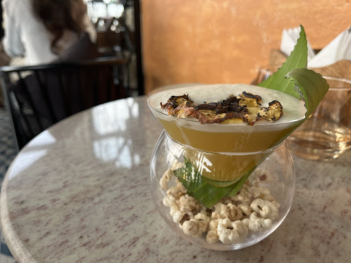 Now comes to food, cocktails and starters are still okayish. We already spent more than an hour to get everything on the table and decided not to go for the main course there as we were running out of time. All that they serve only sounds fancy but are pretty much regular items coated with fancy terms. Portion is way too small. We ordered for 3 cocktails and 3 starters for 3 of us and it wasn’t sufficient at all.