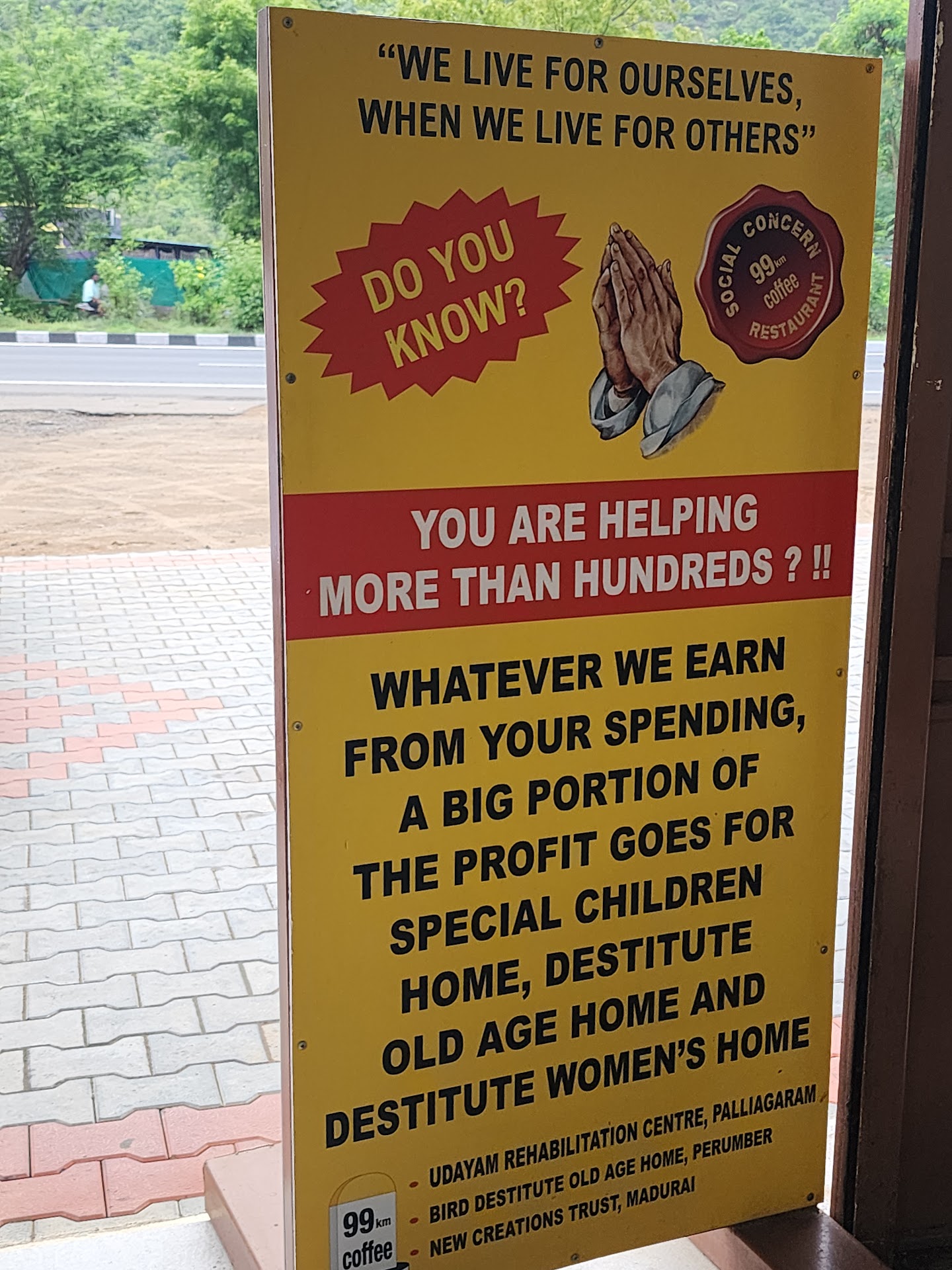 But Every penny spent will be shared to Service Oriented Organisation as this 99Km Coffee stop owned by Mr. Mano Solomon, a retired air force personnel who is also the founder, takes care of his visitors like his own family. I can say he is a man with social responsibilities.