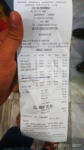 Ā Ā Ā Read moreOne week before my father was hospitalized opposite to A2B - Old Washermenpet (Near Maharani theatre) - he is undergoing terminal illness (final stage of cancer) he wishes to have iddli, the doctor also informed us to get hot and fresh idli, moreover we visited your branch around 7PM (evening), before billing we asked the packing session lady is hot/fresh idli available (and told for patient condition), she said yes hotand fresh idli available just bring the bill the cost was high when compared to other place hotels, Meanwhile the best part is they gave not properly cooked idli and it was completely not hot, when we saw it looked "ready to throw at garbage" even the oncologist seeing that said don't offer him that. When my mother went asked the manager (Regan) about this issue, he didn't even asked sorry, meanwhile he said sometime it might happen, it won't happen again. What sort of customer service are you people doing, you are not giving anything free, with GST you are asking. Today again I met that person and said what you did is injustice, he didn't even apologize for his mistake. If he still serve in this branch i will definitely go to consumer court because i have your manager voice as well the pics of the idli with bill, as well the doctor voice after seeing the food. Those who read this may think i am so silly that was the last day for my father solid food. He is fighting...