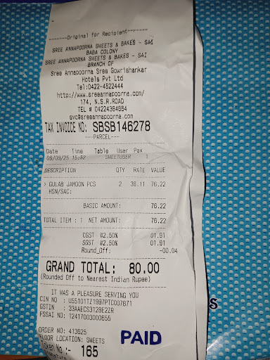Later no body gave the bill. I was waiting for another 5mins and I asked them to give the bill. Then they gave the bill.