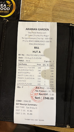 I visited today on 01.10.2025 at Arabian Garden Seafood Restaurant in Nungambakkam, and I must say it was a truly delightful experience. The seafood here is absolutely amazing – fresh, flavorful, and cooked to perfection. Every dish we ordered had an authentic taste, rich spices, and just the right balance of flavors that made the whole dining experience memorable.