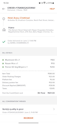 That to chicken with very bad odour with old taste. Vomit🤮🤮🤮🤮🤮🤮🤮