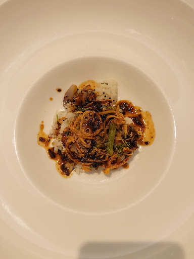Tomato and millet rice crisp - Crispy rice cake with crunchy veggies and sauce 😚 Crispy chili potato with buttermilk sphere - Surprised by the way the buttermilk was sphered; awesome Spiced potato 🤩 Cauliflower crunch with pomo & mint - Weird cause had the burnt taste from the cauliflower yet interesting 🤔 Pumpkin dumpling in butter emulsion and fried beans - THE BEST; flows smoothly along every bite 😘