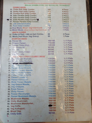Balaji dhaba is famous veg hotel where we get all common north indian veg dishes like puri sabji in breakfast time, rice with dal, two types of sabji, and aachar, and roti with two types with a piece of onion. many he cookes tasty aalu paratha. overall tast of all dishes very tasty as like to eat in our home .Owner and staff of hotel are belongs from Bihar state which is in north india and all are very polite, supportive with their customers. Very peaceful...