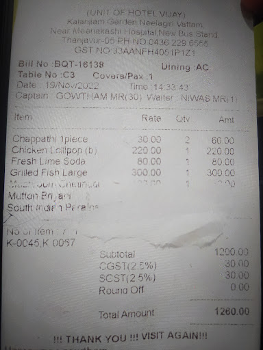 Had ordered the menu at the start itself. Chicken lollipop was one among them, being my kids favourite. Had received the menu one by one except the chicken lollipop. They kept on saying that it is being prepared. We had finished our lunch and had to wait for another 20 minutes for the chicken lollipop to arrive. Totally it took 45 minutes. Just imagine the situation, how I had to calm my kids.