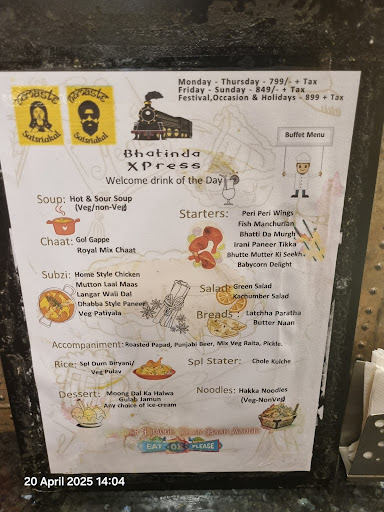 Step into the vibrant world of Bhatinda Express Restaurant, where the aroma of spices dances in the air and the ambiance transports you to the heart of Punjab. As you enter, you're greeted with warm smiles and the sound of traditional Punjabi music, setting the stage for an unforgettable dining experience.