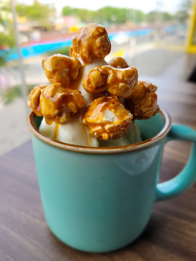Popcorn ice cream - Similar ice cream topped with caramel popcorn; the gooey popcorn tasted great than the ice cream; SWEET and addictive 😍
