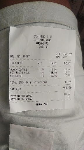 Four Cups(veg restaurant)1st Floor, Fortune Suites, 134, E Periasamy Rd, above Poppet Jamal, R.S. Puram, Coimbatore, Tamil Nadu 641002, India